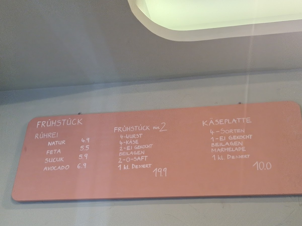 As for the menu, you are in for a treat. Choose from the classic Kaffee klein for just €1.90 or indulge in a Latte Macchiato at €3.20, and let yourself be carried away by the rich, velvety froth. For those who appreciate the nuances of espresso, the Espresso Doppio offers a robust flavor punch for €2.00. Not to be overlooked are their extensive tea offerings, with options like Chai Latte and Frischer Tee featuring refreshing flavors such as mint and ginger, priced around €3.20.